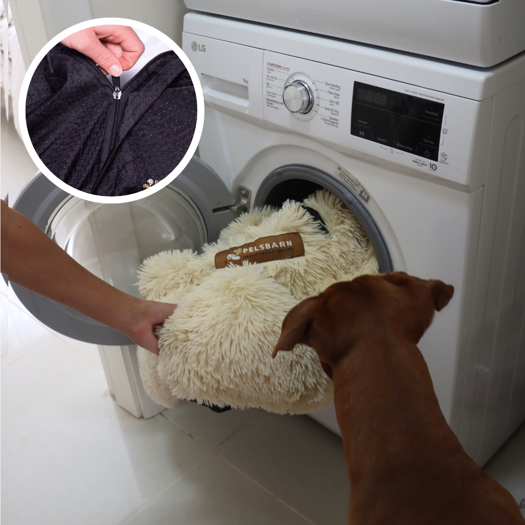 Unser Hundebett ist maschinenwaschbar und lässt sich problemlos bei umweltfreundlichen 30 Grad reinigen.