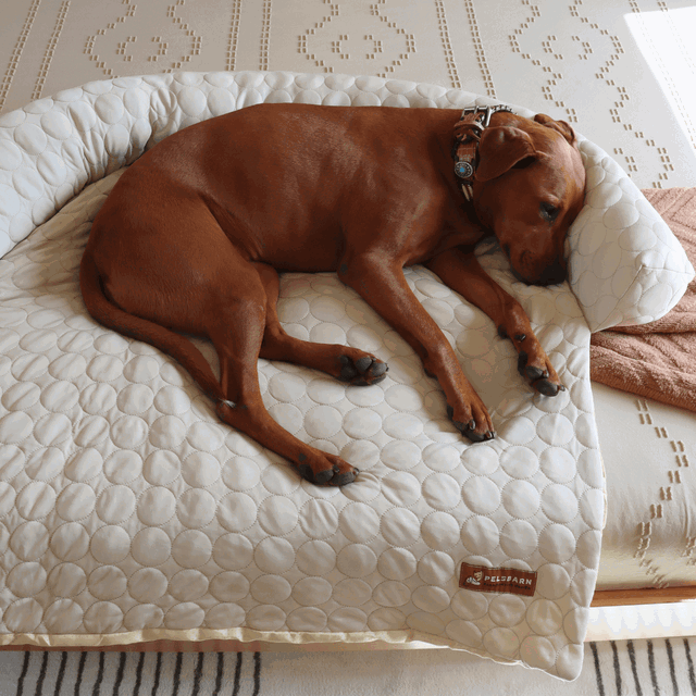 „Die schlaflosen Nächte meines Hundes begannen vor 4 Jahren. Er litt tagelang, manchmal wochenlang. Die Überhitzung in der Nacht machte alles noch schwieriger. Er wachte mitten in der Nacht schweißgebadet auf, wälzte sich hin und her und konnte sich nicht beruhigen. Dann begann die Erschöpfung... Wir haben alle Alternativen ausprobiert, kühlende Matratzenauflagen, atmungsaktive Laken, Schlafen mit einem Ventilator auf voller Stufe, aber nichts hat funktioniert. Ich wünschte, es gäbe das Pelsbarn Kühlende Sofa Bett schon damals...“