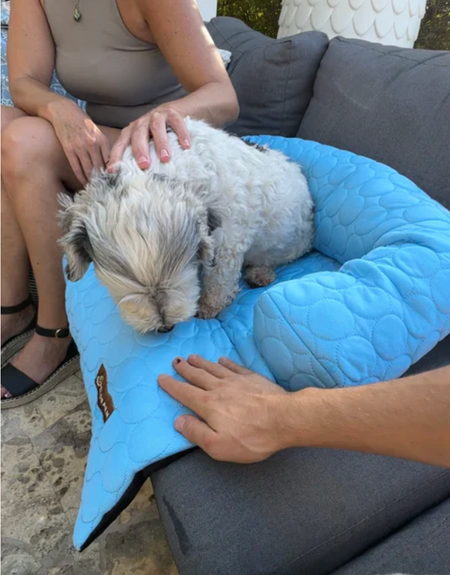 Unser kühlender Sofaschoner ist aus Eisseide gefertigt. Die Fasern aus Eisseide sind sehr weich und haben eine große Oberfläche, die Feuchtigkeit aufnehmen kann. Wenn die Feuchtigkeit auf die Fasern trifft, verdunstet sie schnell und leitet die Wärme vom Körper weg - das Ergebnis ist ein Kühleffekt, der die Körpertemperatur des Hundes senken und regulieren kann.